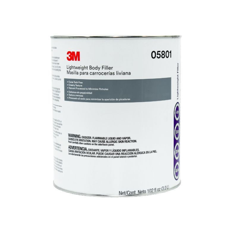 3M Lightweight Body Filler is a professional-grade polyester filler designed for fast, easy repairs of dents, dings, gouges, and other surface imperfections on automotive panels. Its lightweight formulation spreads smoothly, cures quickly, and sands effortlessly, making it a reliable solution for body shops and DIY users who need strong, long-lasting results with minimal effort.