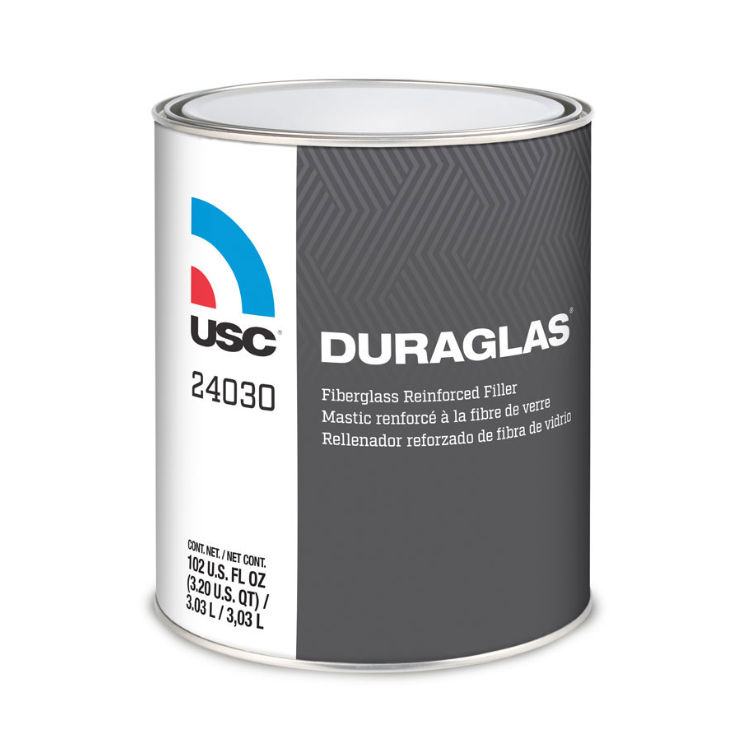 USC Duraglas 24030 spreads smoothly for a fiberglass filler and cures quickly, allowing for efficient sanding and finishing. Once hardened, it provides a strong repair base that can be topped with a lightweight body filler or glaze for a seamless, paint-ready finish.
